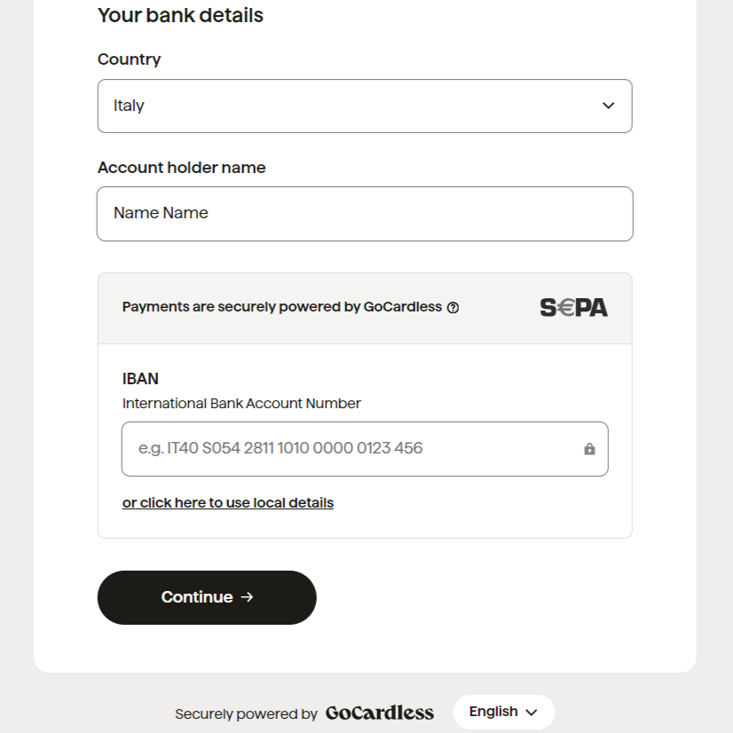 Μόλις επιβεβαιώσετε την επιλογή σας, θα μεταφερθείτε σε μια ασφαλή σελίδα GoCardLess.