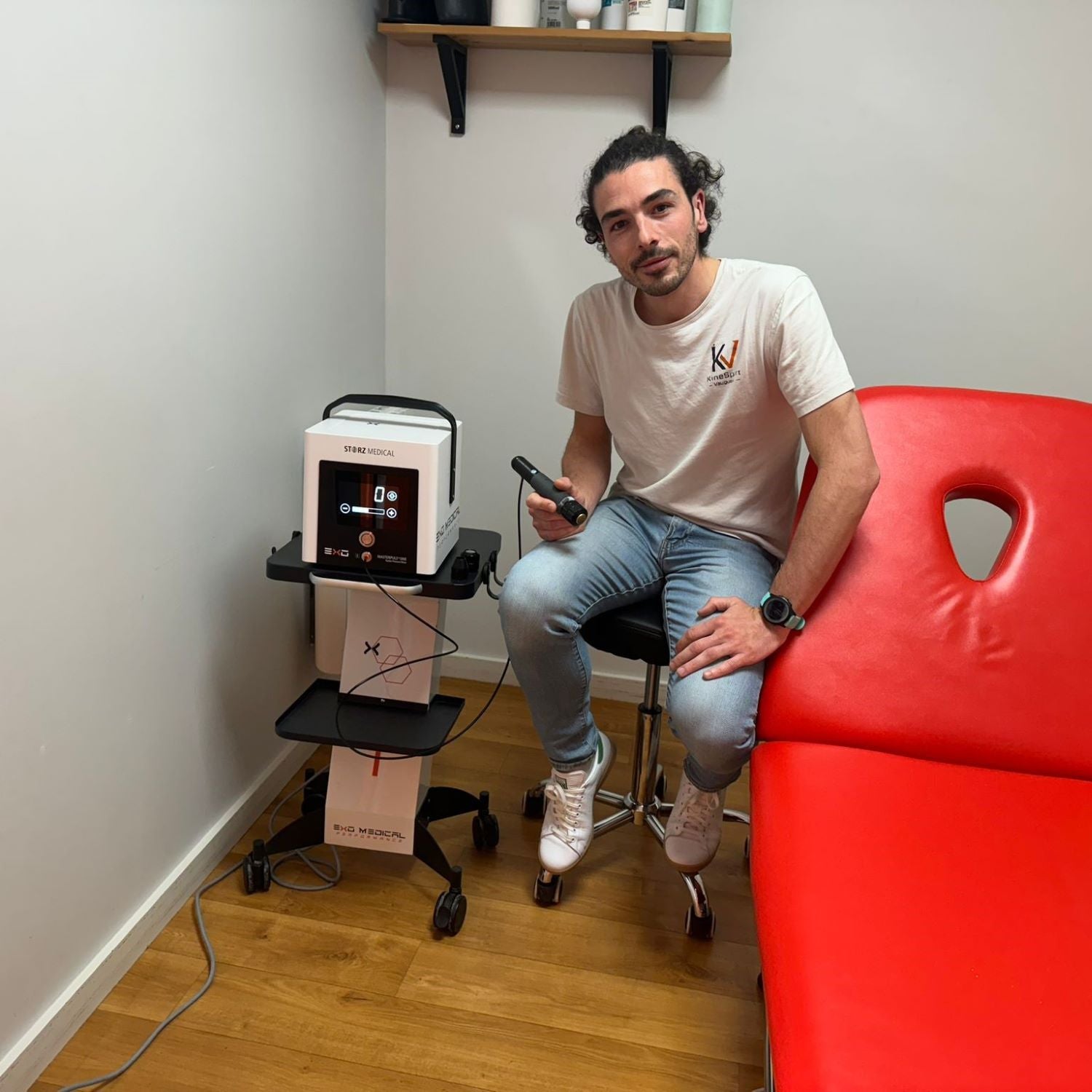 Η κινητική ενέργεια μεταδίδεται ελαστικά στην περιοχή θεραπείας του ασθενούς μέσω ενός πομπού, χρησιμοποιώντας ένα βλήμα που ενεργοποιείται με πεπιεσμένο αέρα. Τα κρουστικά κύματα εξαπλώνονται σε μεγάλη επιφάνεια στον ιστό.