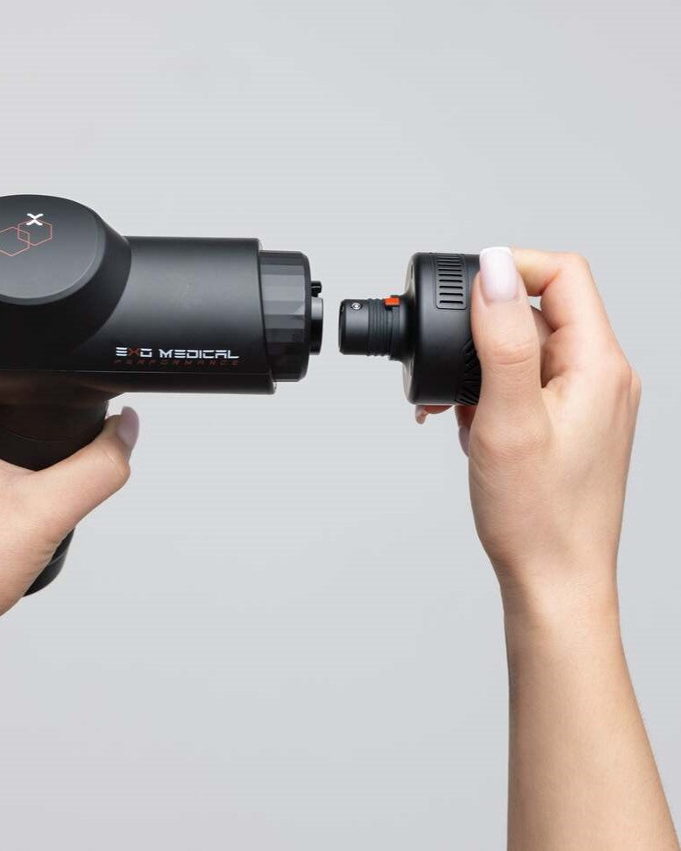 5 εφαρμογείς: διαφορετικές κεφαλές για την ανακούφιση της μυϊκής έντασης και την επιτάχυνση της βαθιάς και επιφανειακής αποκατάστασης (Thermo, Spine, Cone, Soft, Sphere).